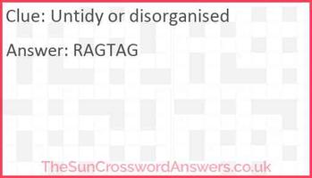 utterly disorganised (7) Crossword Clue - Wordplays.com utterly disorganised (7) Crossword Clue ; Disorganised speaker rose (7) ; RAMBLER ; Disorganised parties trudge on wearily (7) ; TRAIPSE. Completely disorganized Crossword Clue: 2 Answers with 5-7 ... COMPLETELY DISORGANIZED Crossword Clue · Completely completed (73.13%) · Complete ... or completely destroy (63%) · a flighty and disorganized person (50.15%) ...