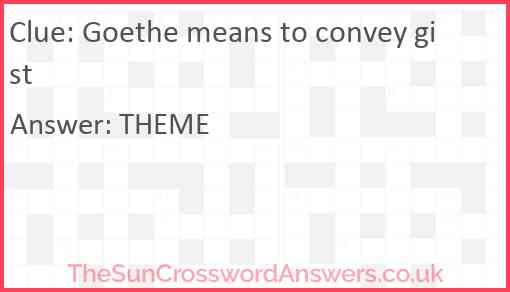 Gist - crossword puzzle clue Clue: Gist. Gist is a crossword puzzle clue that we have spotted over 20 times. There are related clues (shown below). Gist crossword clue - NewsDayCrosswordAnswers.com Jan 7, 2023 · Newsday Crossword; January 7 2023; Gist; Gist. While searching our database we found 1 possible solution for the: Gist crossword clue. This crossword clue was last seen on January 7 2023 Newsday Crossword puzzle. The solution we have for Gist has a total of 3 letters. Gist - Crossword Clue Answers - Crossword Solver Jan 4, 2023 · The crossword clue Gist with 8 letters was last seen on the January 04, 2023. We think the likely answer to this clue is MAINIDEA. Below are all possible answers to this clue ordered by its rank. You can easily improve your search by specifying the number of letters in the answer. Refine the search results by specifying the number of letters.